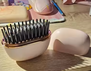 This mini straightener brush makes your hair smooth and shiny in just a few seconds. Itβs small, light, and easy to carry β perfect for travel, school, or work.